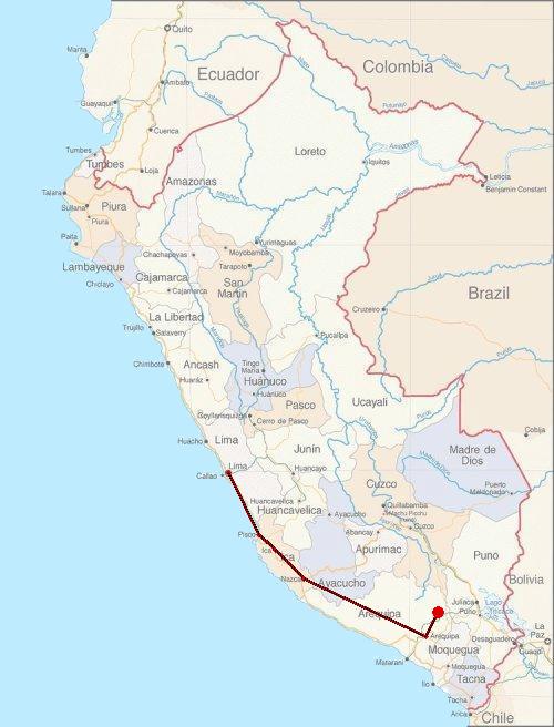 Op woensdag zijn we op weg gegaan van Arequipa naar de Colca Canon. Het was een hele zware rit, want de wegen waren al heel snel niet meer geasfalteerd. We stegen nu ook van 2300 meter naar 4900 meter. Om het hoogteverschil op te vangen en niet ziek te worden gingen we aan de cocablaadjes. Je krijgt dan een soort pruimbal van groene blaadjes in je wangzak en daar zuig je dan op. Ook moesten we veel drinken. Dit hielp bijna niet. Iedereen kreeg hoofdpijn en voelde zich niet prettig. Anneke werd echt beroerd. Het landschap was heel mooi. Een woest berglandschap. Wel was het meer begroeid dan de woestijn bij Nasca. We zagen vicuna's, een zeldzaam soort lama's. Het hotel was om te zien wel leuk. Ieder stel had een eigen huisje. Het eten was echter heel slecht. Ik kreeg bijvoorbeeld bevroren patat. Toen ik de chipszak uit de tas haalde, was die door de lage luchtdruk helemaal opgezwollen tot een ballon. Donderdagmorgen gingen we naar de Colca Canon om de condors te zien. Anneke was echter nog zo beroerd, dat ze niet meeging. Achteraf een wijs besluit, want we hebben heel wat gewandeld en geklommen, bovendien was de weg nog slechter. Bij het uitkijkpunt staan dan een heleboel toeristen om half acht te wachten op de eerste condor. We hebben er een gezien, die ik goed heb kunnen filmen. Toen de wandeling. Op een gegeven moment liep ik voorop op een paadje van 50 cm breed met aan de ene kant een irrigatiekanaal en aan de andere kant een afgrond van 1300 meter diep. Op een moment werd het paadje nog smaller en ben ik toch maar half in het irrigatiekanaal gaan lopen. Op dat moment kwamen er zelfs vier condors aan. Een vloog op vier meter voorbij. Het was nog maar een jonkie (bruin ipv zwart met wit, dat worden ze pas na zeven jaar) maar de vleugelwijdte was al bijna 3 meter. Hierna een afdaling naar een plaatsje, waar we gingen lunchen. Daar stootten we op een begrafenis. Voorop een muziekkapel. Na de begrafenis gaan de mensen bij de overledene thuis de hele dag en avond eten en drinken. Ondertussen was Anneke een beetje aan het bijkomen. Ze wilde douchen en had toen alleen maar koud water. 's Avonds tijdens het diner viel de stroom uit en 's morgens was er tenslotte geen waterdruk.