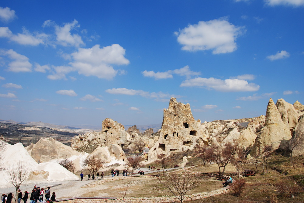 Cappadocia is echt de toeristen attractie van het midden van het land! Wat is hier te zien: een soort laven dorp. In lava en zacht gesteente zijn er door erosie soort stenen kegels ontstaan. Deze kegels hebben ze vervolgens uitgehold en daar wonen ze in. Nu nog steeds! Het hele dorp bestaat uit deze en normale huizen. Daarnaast hebben ze een openlucht museum waar ze in deze kegelvormige stenen (die in 3000 bc door de Hitties zijn uitgehouwd) allemaal kerken gemaakt en die van binnen erg mooi beschilderd met frescos (1100 AD).