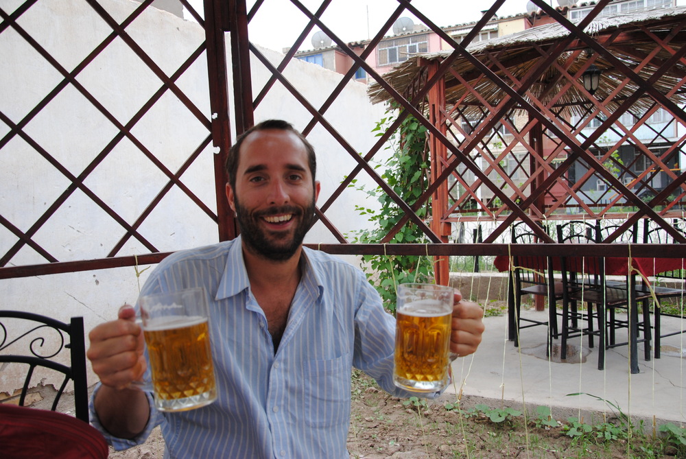 Omdat Vali een ander entry-point had geregeld dan we gepland hadden, moesten we een beetje detouren. De eerste stop was precies tussen onze entry- en exitpoint in: Mary, naast de oude stad Merv dat een belangrijke rol speelde op de zijderoute. Merv viel tegen, er was niet veel meer van over behalve een paar hoopjes zand. Maar Mary had vooral wat anders te bieden: Lekker een biertje drinken (met alcohol), dames zonder hoofddoek maar in een sexy jurkje en bovenal grote stukken overheerlijke sisch kebab (sorry Linda, echt beter dan de Griekse souvlaki's).