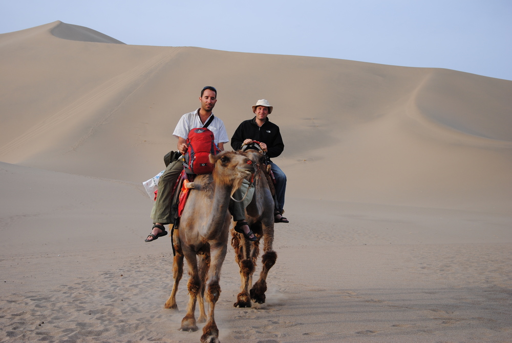 In Dunhuang was het dan eindelijk tijd voor wat Chinese cultuur. Er is daar een prachtig grottencomplex waar vroeger duizenden boeddhistische monniken woonden. Onder leiding van een goede gids (de meeste Chinezen kunnen nog steeds weinig Engels... ze hebben nog al moeite met sommige klanken: Arjan Lobben) hebben we mooie tekeningen en beelden gezien waaronder 1 van de grootste standing boeddha(sinds dat de taliban de grootste boeddha kapot hebben geschoten). Daarnaast moesten we natuurlijk wel nog als een echte zijderoutekaravaan een tochtje en overnachting maken in de woestijn.