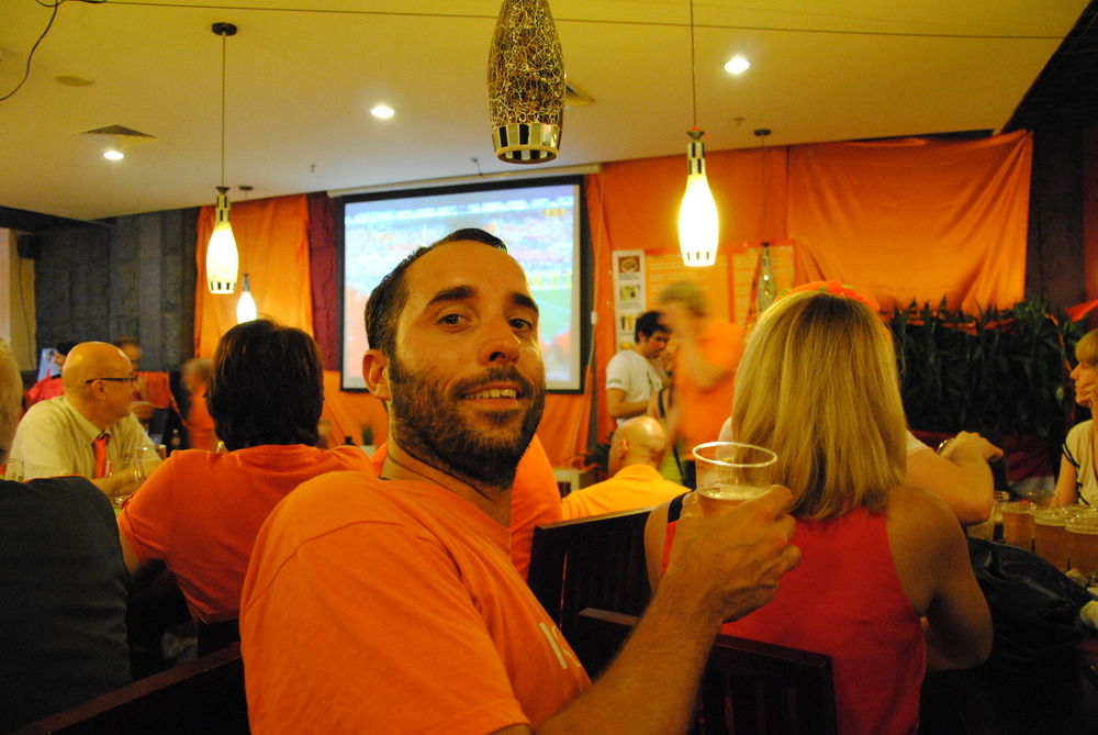 Gelukkig waren we ook op tijd voor het EK in Beijing en hebben we denk ik met 100 Nederlanders volledig in oranje, Heineken bier en bitterballen voetbal gekeken.